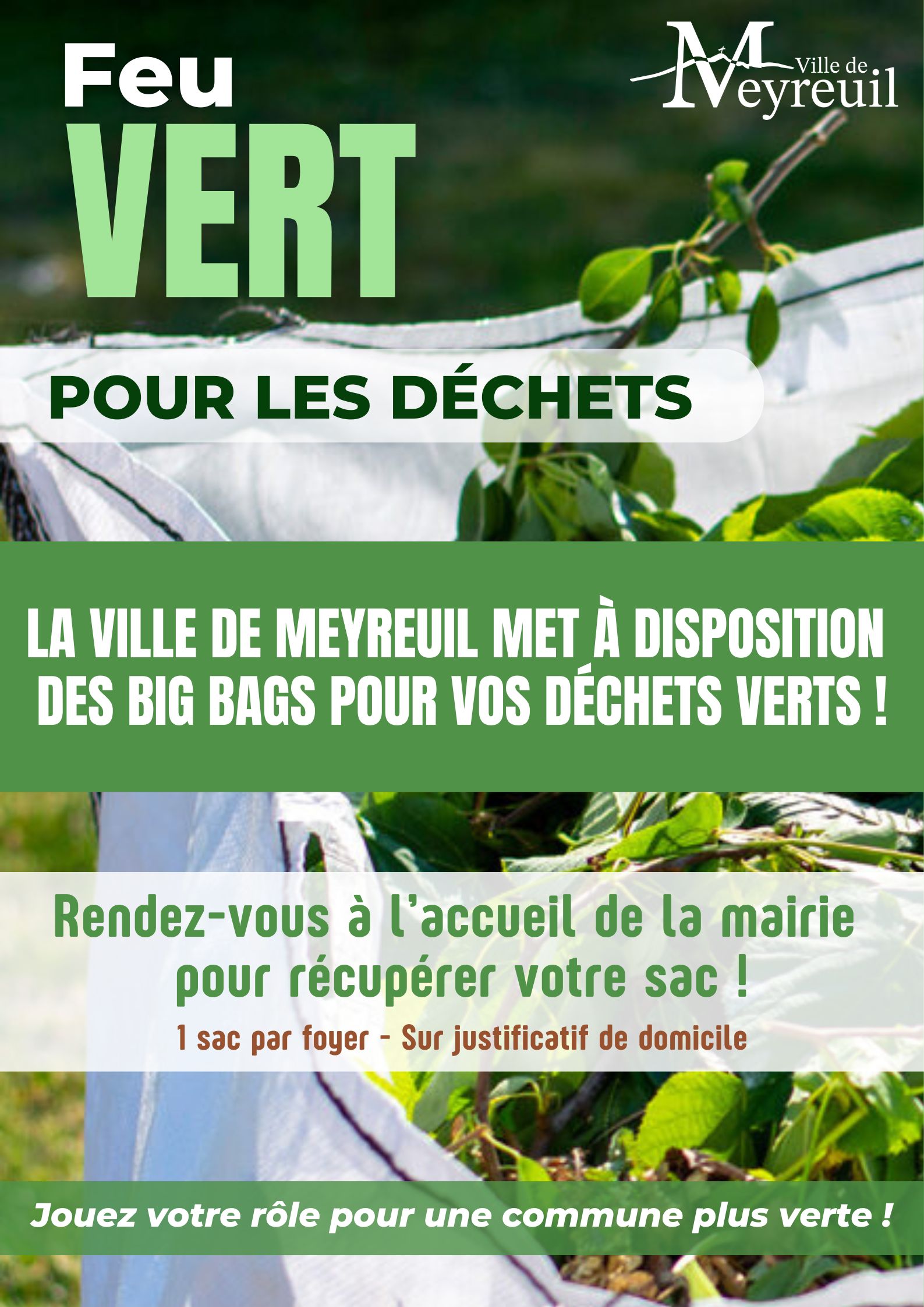 La ville de Meyreuil met à disposition des sacs spécifiques (Big Bags) pour permettre aux habitants de transporter leurs déchets verts à la déchèterie dans des conditions optimales.