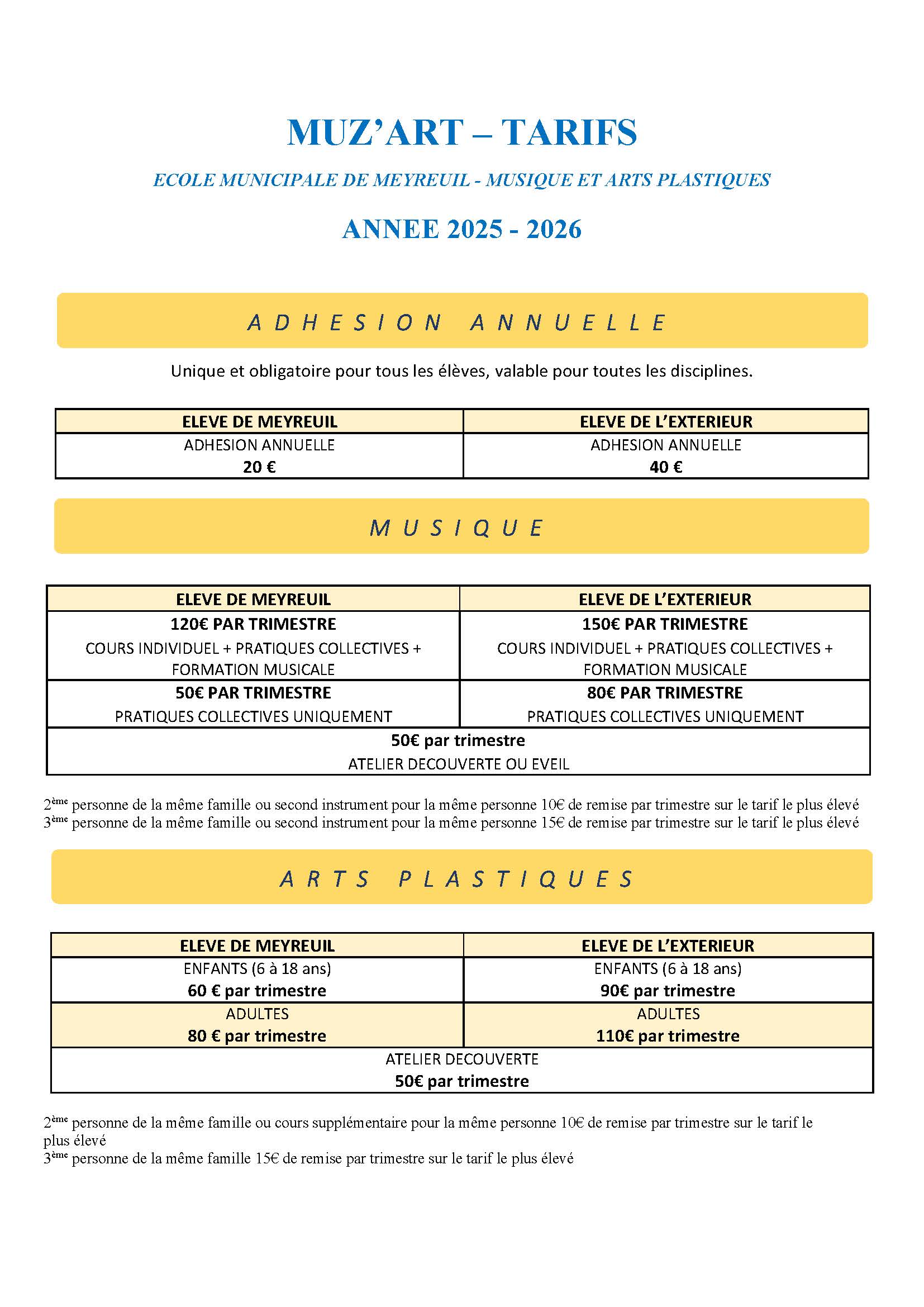 Les renseignements, inscriptions et règlements pour les cours de musique et d’arts plastiques se font exclusivement à l’école Muz’art.